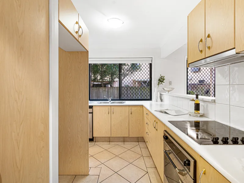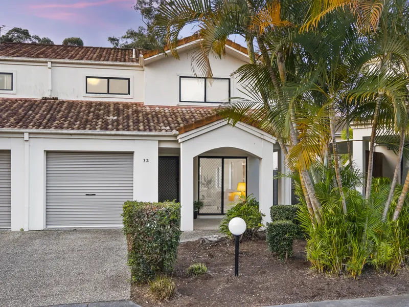 Property Features: This townhouse makes a great first impression with its sleek rendered faade, terracotta roof tiles, and tropical-style garden with tall palm trees along the driveway, leading to a single lock-up garage and extra off-street parking space.