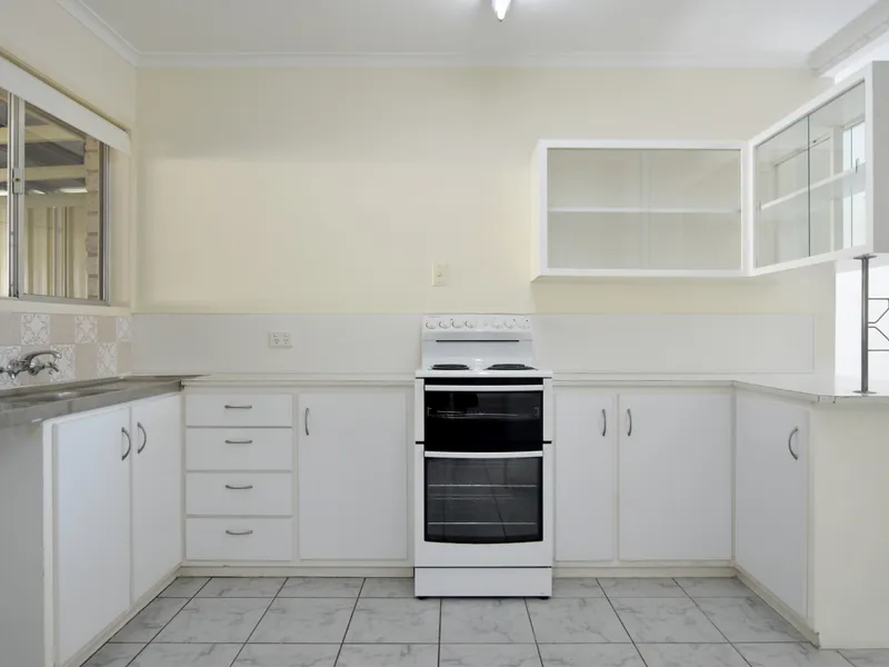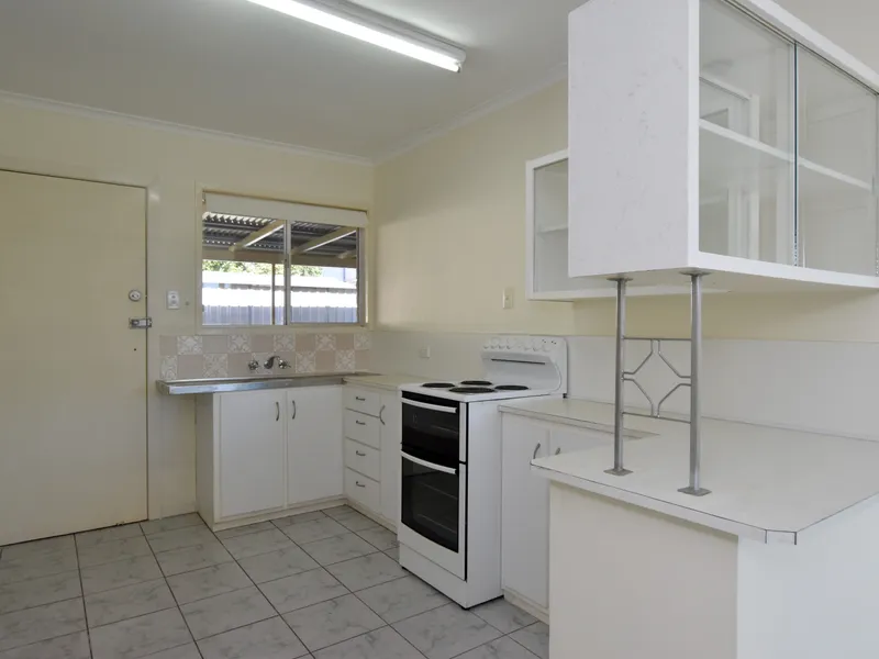 The well-equipped kitchen includes a dishwasher, ceramic cooktop, under-bench oven, breakfast bar and ample storage. Additional features include a main bathroom with bath and separate toilet, internal laundry, security screens, flyscreens, and a double lock-up garage with internal access.