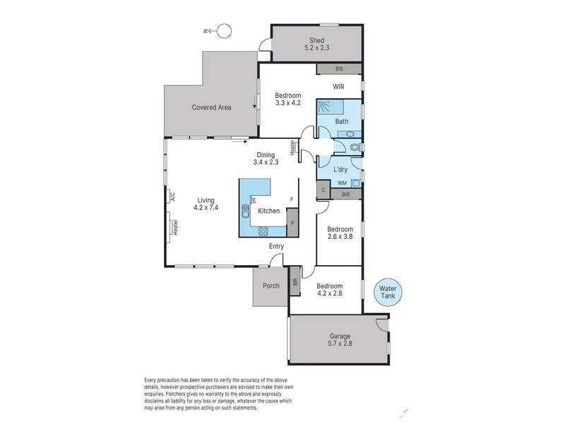 - Secure private and easy care courtyard with shed, covered pergola and water tank
