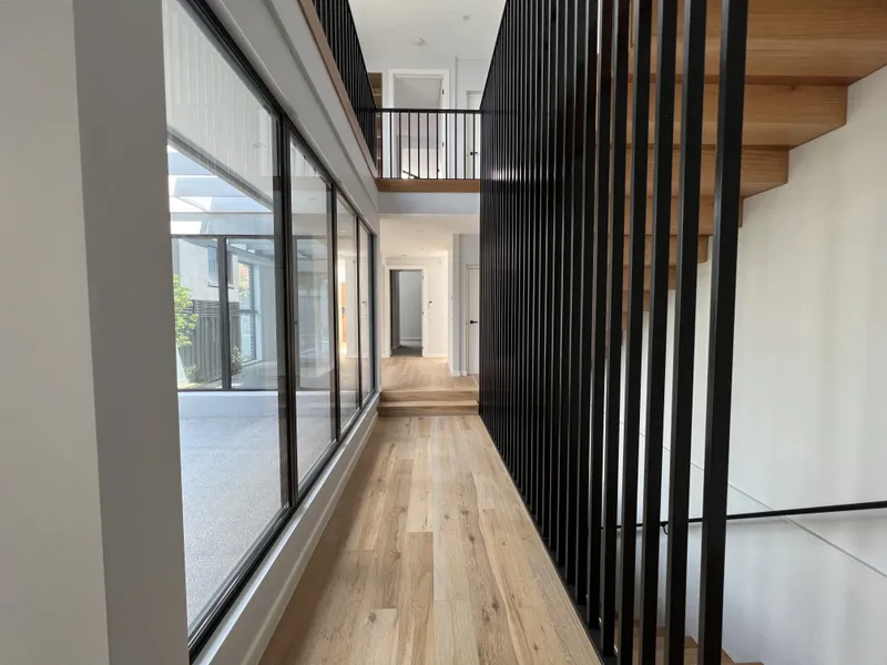 The hallway boasts a horizontal striped decorative wall on the left and a full glass skylight looking up, which ensures you are shrouded with a pleasant atmosphere as long as you enter through the front door. The lounge room and dining area on the first floor are designed with picture windows, providing glorious sunshine and a sense of space. The spacious and bright open kitchen, the latest contemporary wooden small dining table next to the benchtop, the SIEMENS oven and griller, and the built-in double-opening LIEBHERR refrigerator will make cooking one of the most enjoyable experiences at home. Connecting the lounge room and the spacious guest bedroom is a study area with enough cupboards and a spacious ensuite to give you the most convenient experience.