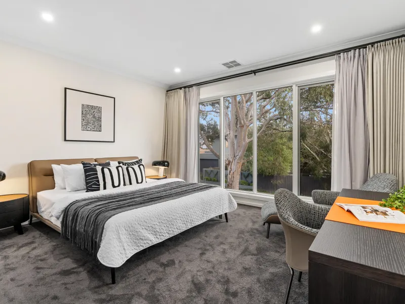 Perfectly positioned in a quiet, tree-lined street beside Camberwell Sports Ground, this impressive four-bedroom residence offers a refined lifestyle with generous space, modern comfort and low-maintenance living. Designed with high ceilings and a sophisticated interior palette, the home delivers both style and functionality for families seeking quality living in a prime location.