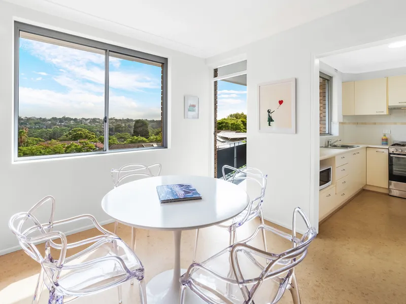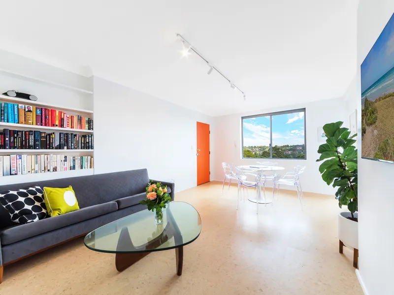Perched on the top floor in a quiet, leafy street, this beautifully renovated apartment is bathed in natural light and infused with a relaxed mid-century sensibility. It offers a refined yet effortless sanctuary in the heart of of Cammeray.