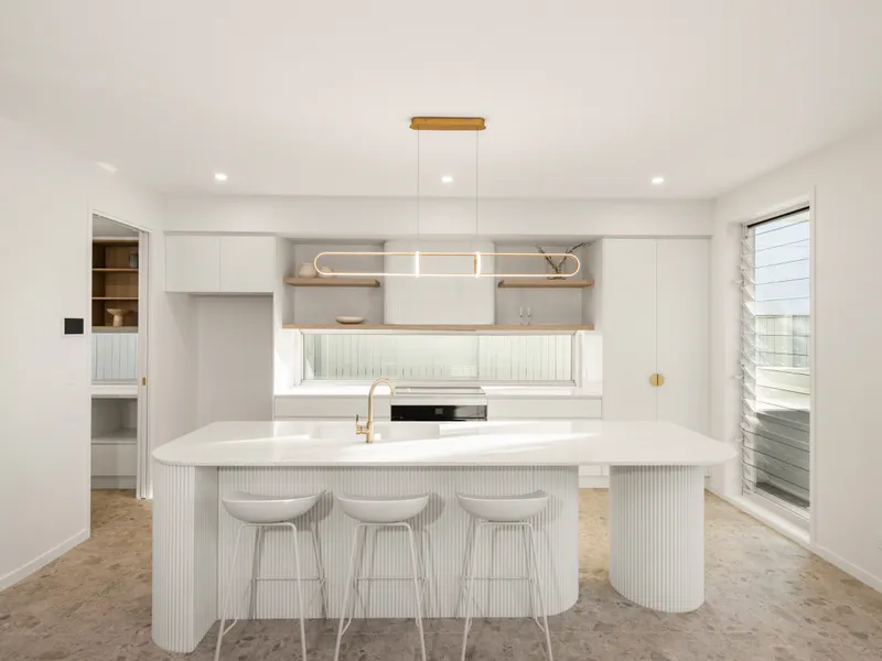 Stone benchtops throughout