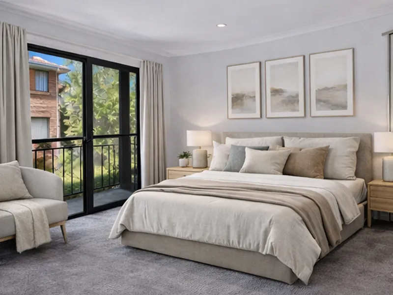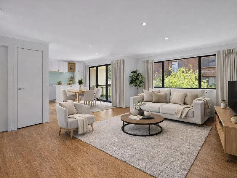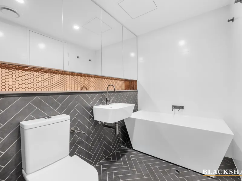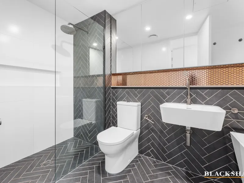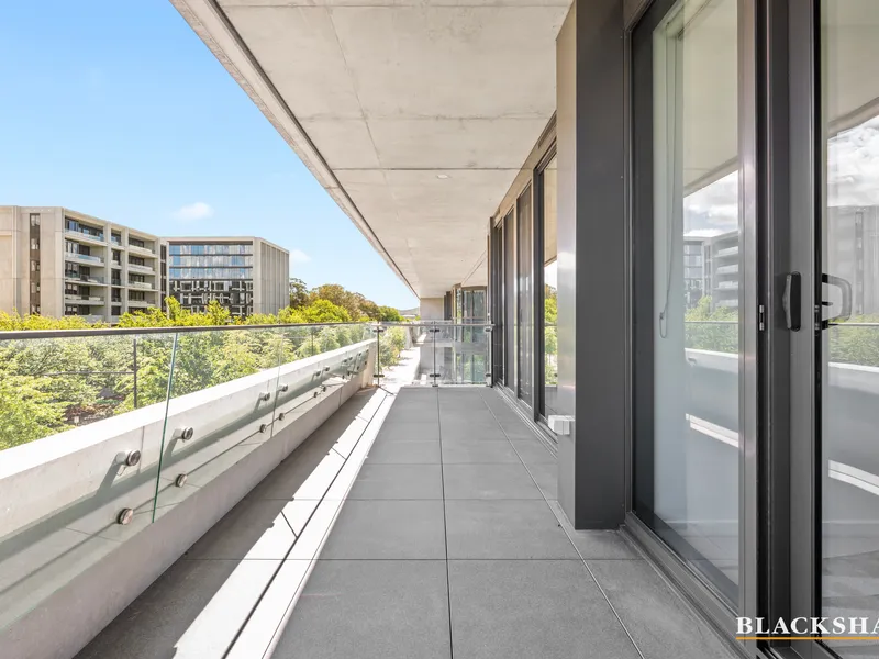 Filled with natural light from floor to ceiling double glazed windows, the layout has been designed to feel open, calm and incredibly liveable. The open-plan living and dining areas flow effortlessly onto a large balcony, with views across Campbell, giving you the perfect spot for coffee in the morning or relaxed entertaining in the evening.