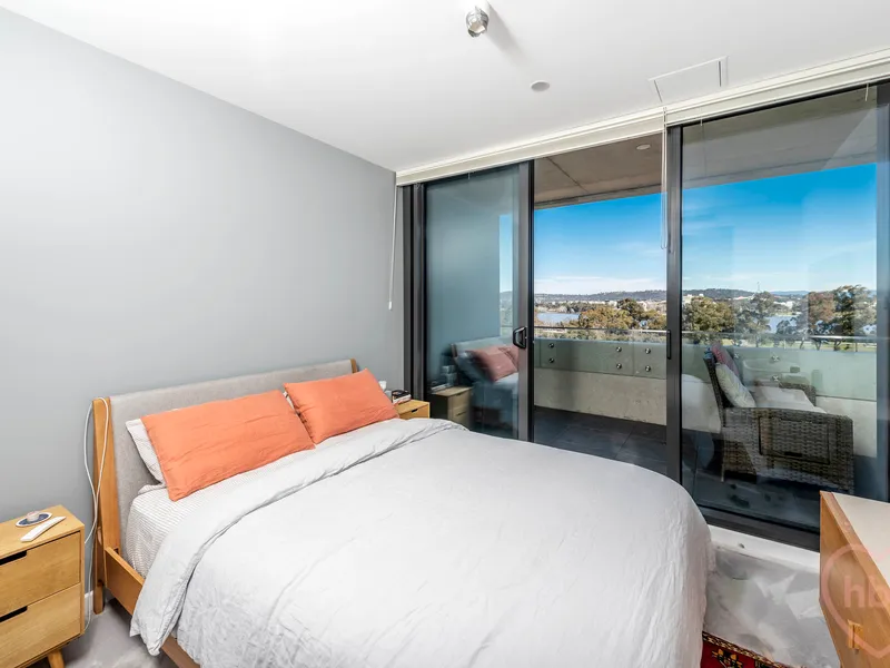 The home boasts a spacious balcony that opens up to a panoramic spectacle of Lake Burley Griffin, the Parliamentary Circle, mountains, and lush trees about to turn orange and red. Indulge in the beauty of your surroundings from the comfort of your own home, as each moment on the balcony becomes a picturesque experience.