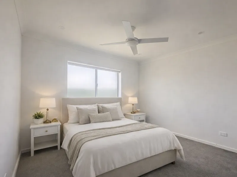 • Split system air conditioning in the living area with ceiling fans in both bedrooms