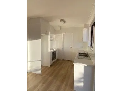 The property has been fully renovated throughout, featuring a modern kitchen and updated bathroom. The ground floor includes stylish floating flooring, while the bedrooms are fitted with comfortable carpet. One bedroom includes a built-in wardrobe.