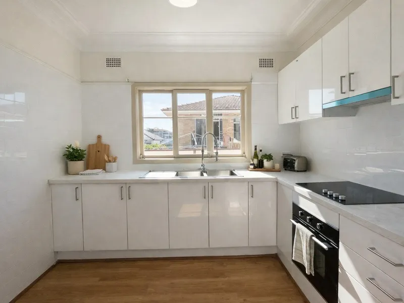 + Stylish modern kitchen with Caesar stone bench top and natural gas