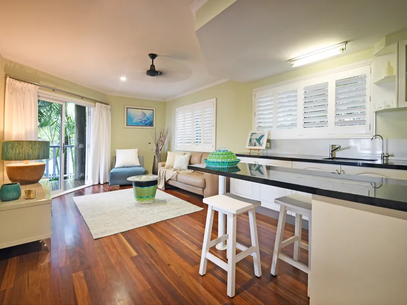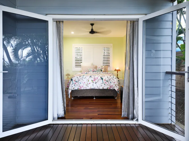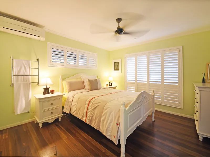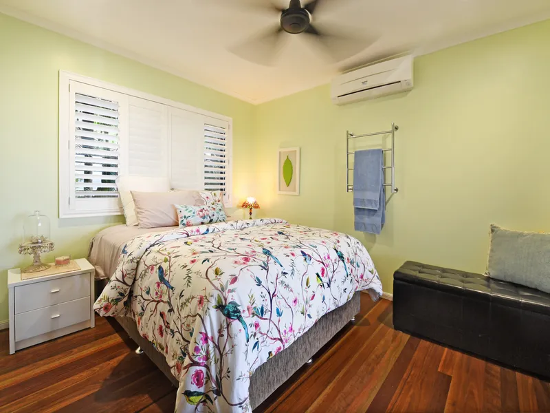 Throughout the home, you'll find exposed timber beams and timber floors, complemented by full air-conditioning to ensure comfort year-round. Louvre windows invite refreshing sea breezes, keeping the home cool on warm summer days. All four bedrooms open out to a large deck, each offering sweeping, panoramic sea views.