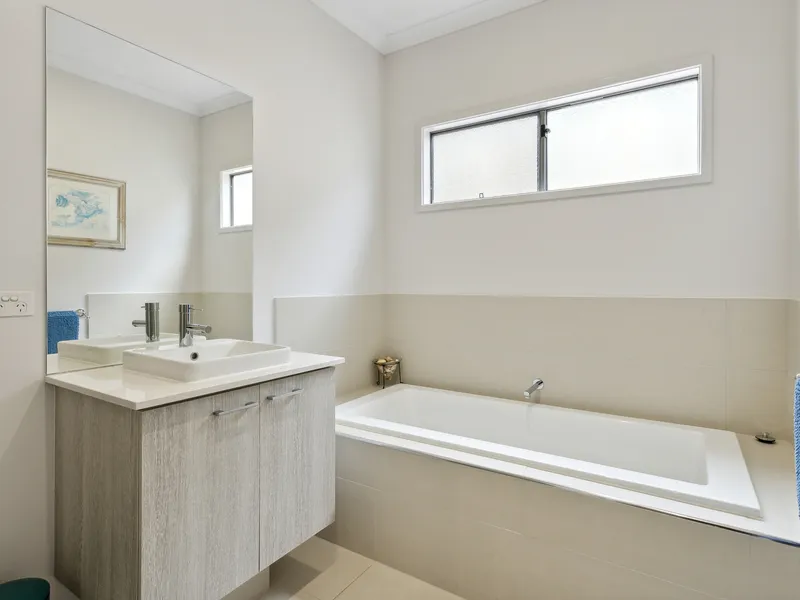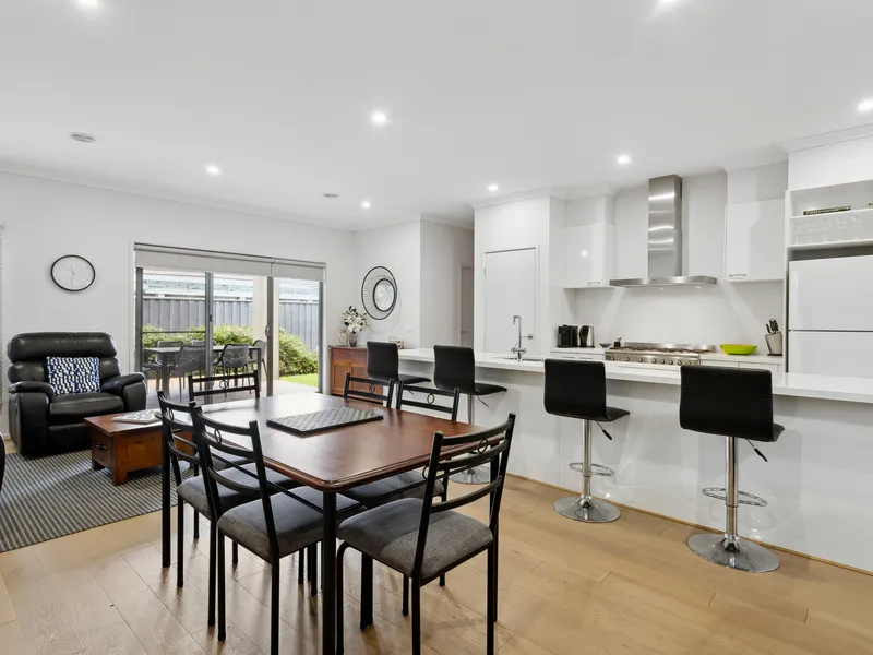 'Waters Edge' - Rosebud`s resort style residential development. Perfectly positioned directly opposite the beautiful Rosebud foreshore and extremely conveniently located only a short walk to Rosebud Plaza shopping centre. Being only approximately one hour's drive from Melbourne and close to the local hospital, medical facilities, cafes and restaurants makes 'Waters Edge' ideal for those looking for a low maintenance permanent lifestyle. This stunning townhouse is fully furnished and offers three bedrooms and is a two storey design that incorporates a double LUG with a secure gated entry. Design features include; a 6.0 star NABERS Energy Rating, designer kitchen with smeg appliances and glass splashbacks, 2700mm ceiling height, gas ducted htg & split system reverse cycle air conditioning, 3000lt water tank, front and rear landscaping and much more.