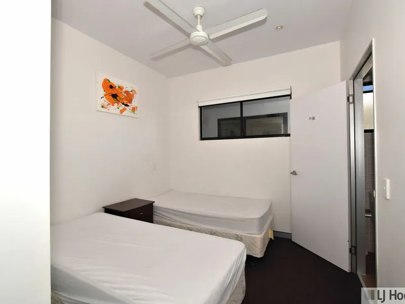 Both bedrooms include built-in wardrobes, ceiling fans, and soft carpeted floors for year-round comfort. The master suite features a private ensuite with both a shower and bath, plus direct access to the balcony – an ideal spot to enjoy your morning coffee or unwind in the evening.