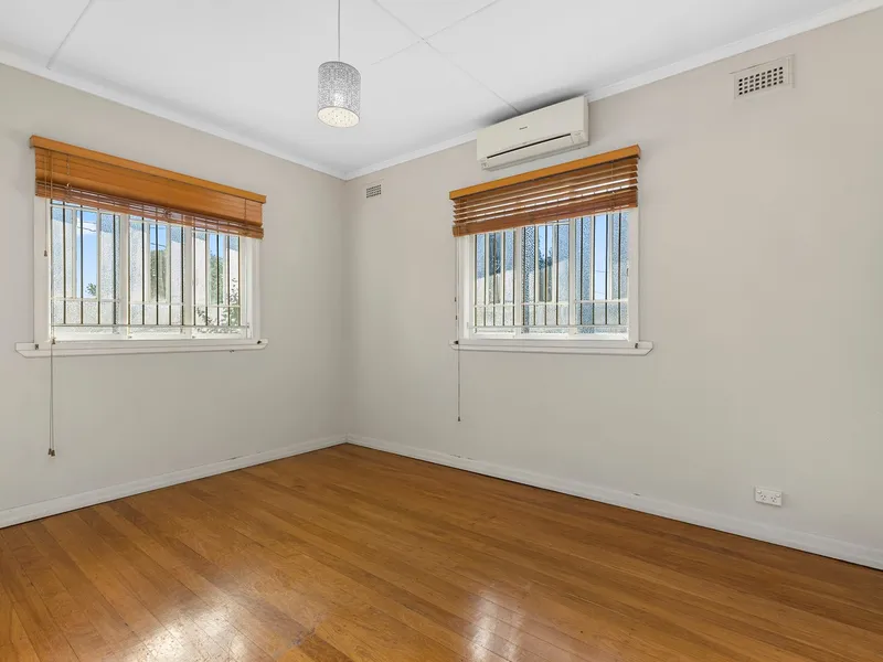 All three bedrooms include timber flooring, with air conditioning servicing the main and second bedrooms for added comfort. The living areas are finished with floating floorboards, and there is also an internal laundry for extra convenience.