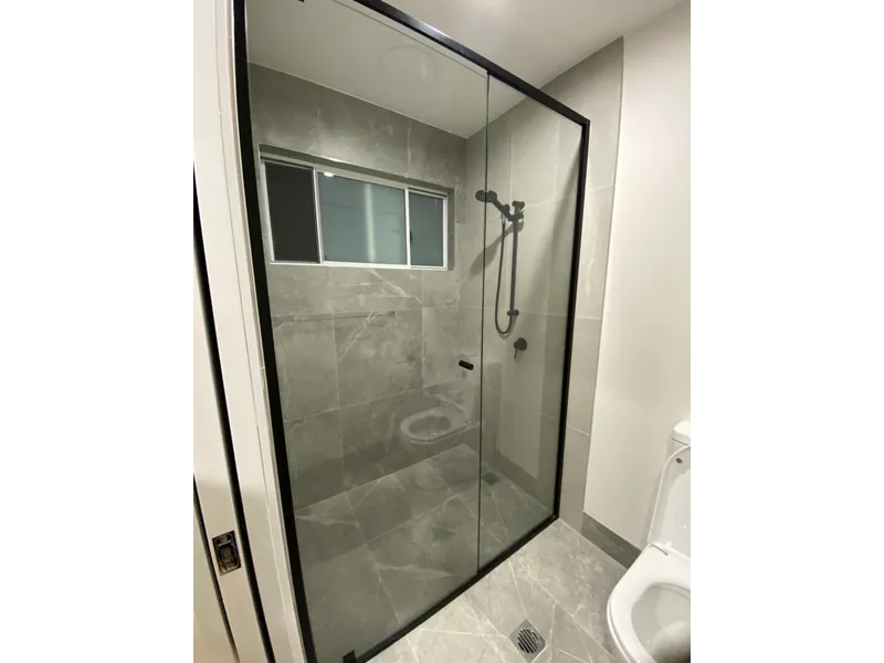 Located on the upper level, upon entry on your left, you will find your private, modern ensuite with a semi-frameless shower, featuring floor-to-ceiling tiles and black fittings.