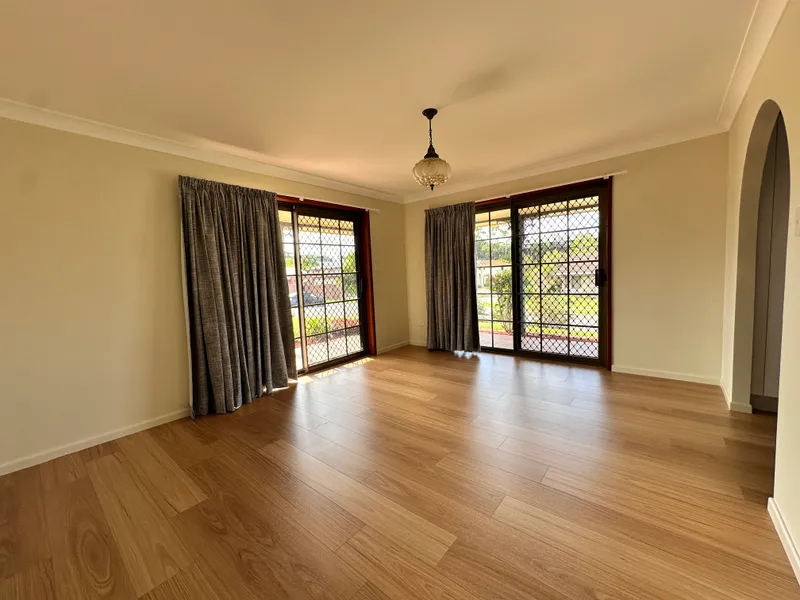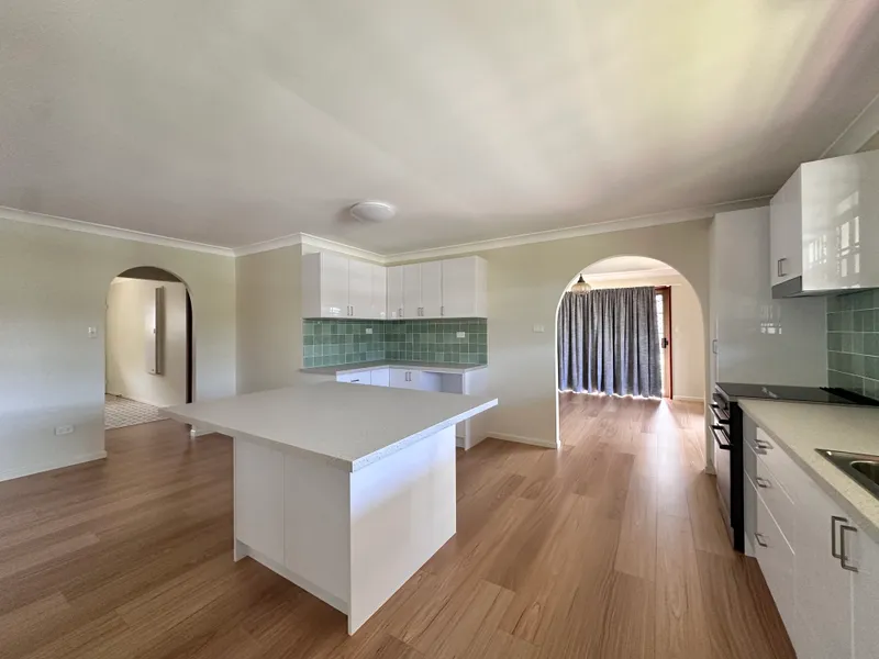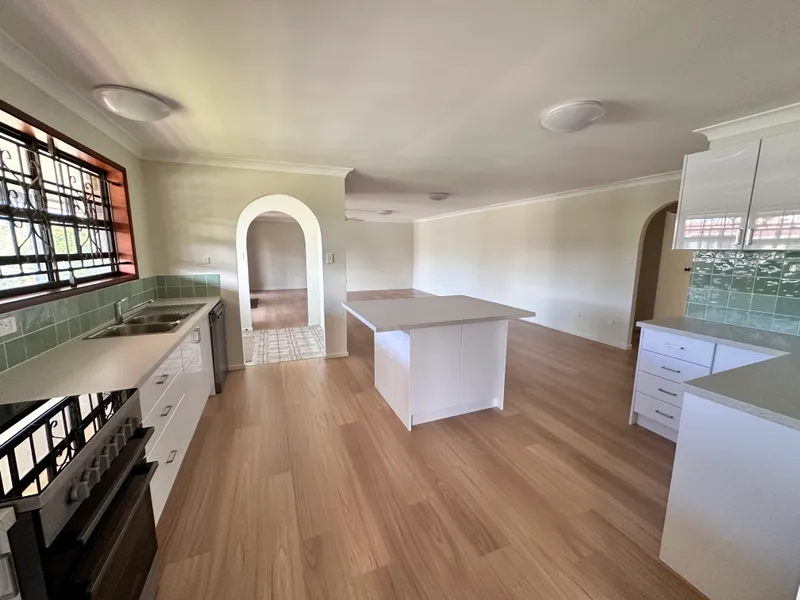 The recently updated modern kitchen is both stylish and functional, featuring ample storage and a spacious island benchtop that seamlessly connects to the open-plan living and dining areas-ideal for entertaining or everyday family living.