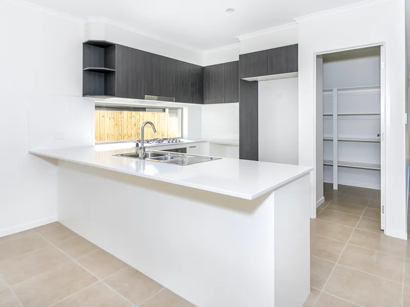 - Modern kitchen with stone bench tops, soft-close drawers, stainless steel Westinghouse appliances and walk-in pantry