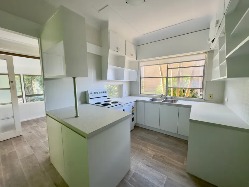 - Kitchen has oversized Caesar Stone benches, gas cooktop and dishwasher