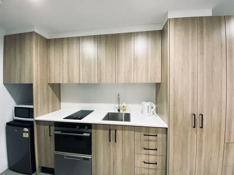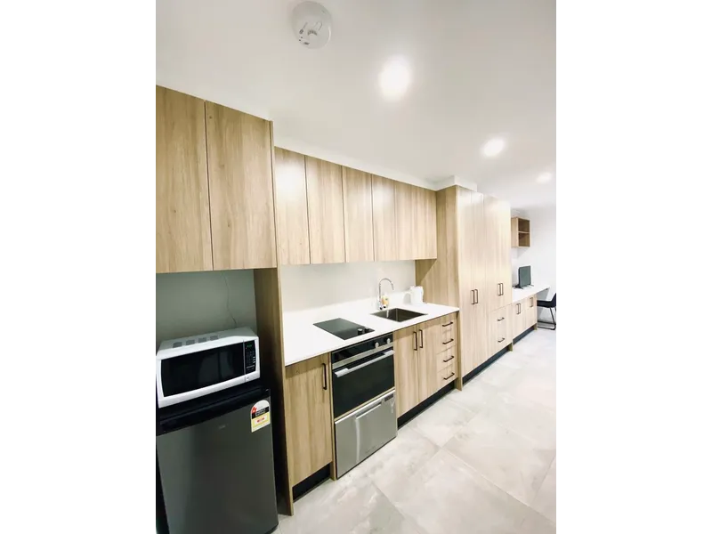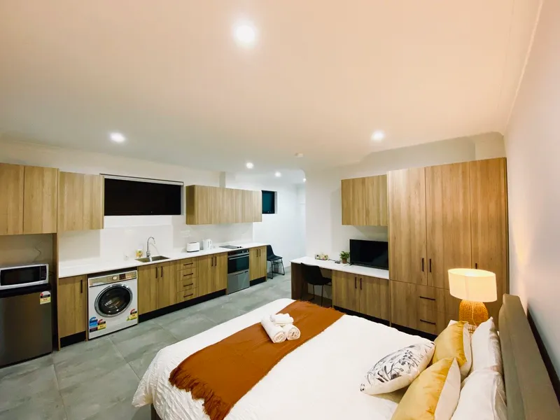 The accommodation is for an entire studio suite, it is fully self-contained with its own kitchen, bathroom. Designed for modern living these apartments offer a convenient lifestyle with bright interiors & modern finishes. Totally private, clean, modern and well equipped with built-in wardrobes, modern kitchen and laundry facilities within the studio.
