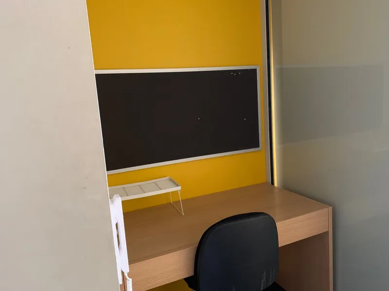 The stylish apartment provides security entrance, an open plan kitchen and dining area, two study desks, modern bathroom and a partitioned bedroom with balcony.