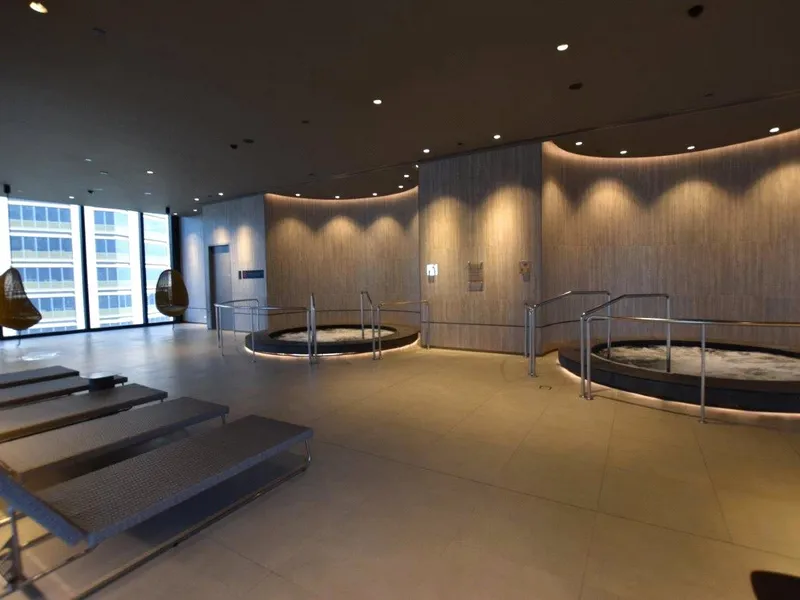 Enjoy the communal facilities including an indoor lap pool and spa, sauna and steam, gym room, yoga room, game rooms and cabanas - communal lounge.