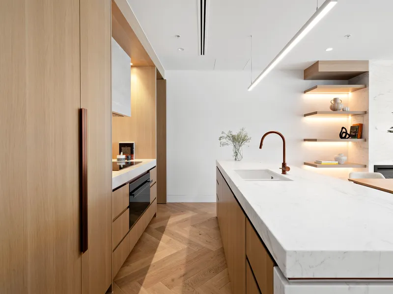 From the moment you enter the stone clad high entry foyer, you are entering a building with an uncompromising level of detail. With only 4 apartments per level, each apartment features super high quality appointments that include a designer blend of stone and natural timber finishes.