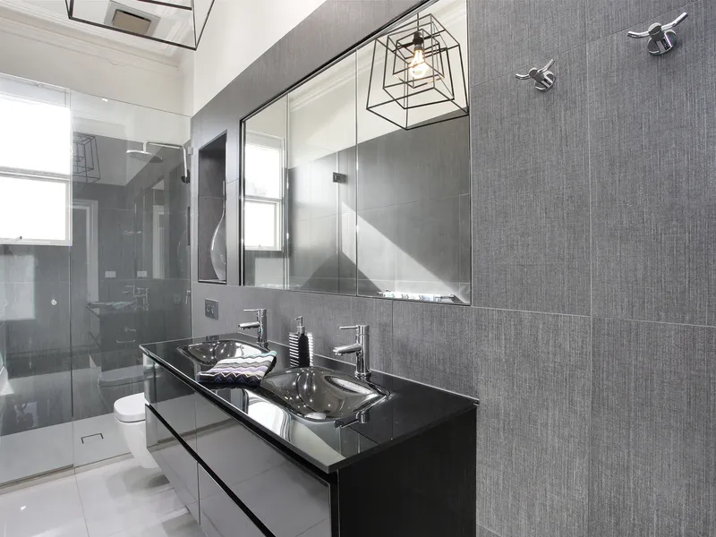 Upstairs comprises a huge master bedroom with dressing area and floor to ceiling robes, a stunning ensuite bathroom with double shower, mirror storage, vanity and WC.