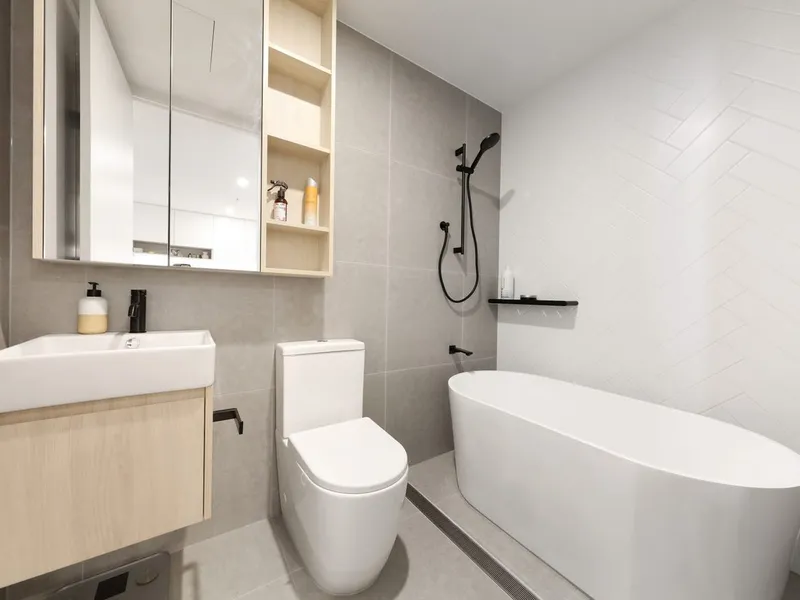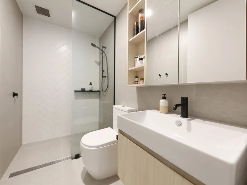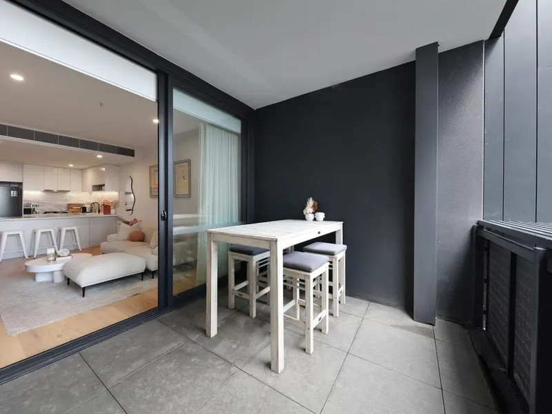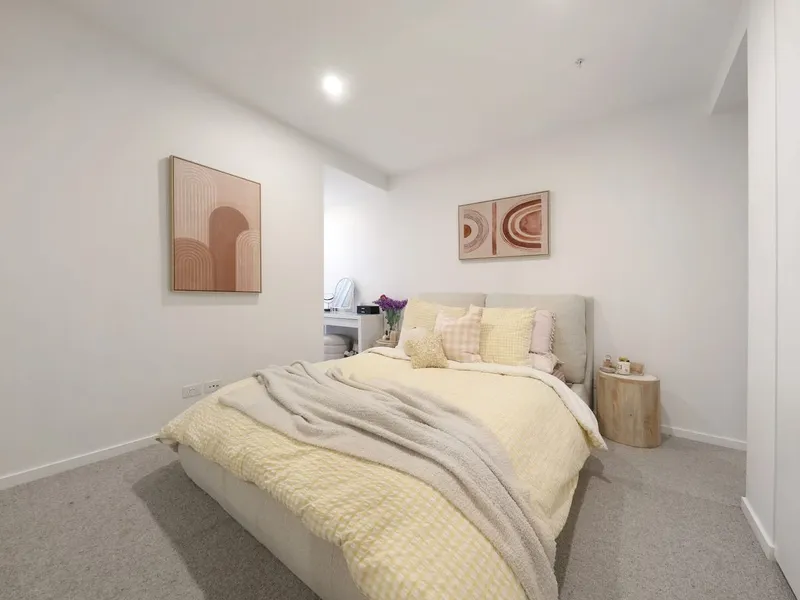 Comprising 2 spacious bedrooms, both with built in robes, master bedroom with ensuite, sun-drenched open plan living area, beautifully appointed gourmet kitchen with waterfall benches, quality stainless steel appliances set against polished stone splashbacks, central bathroom with freestanding bath & shower facilities, European laundry & 2 toilets.