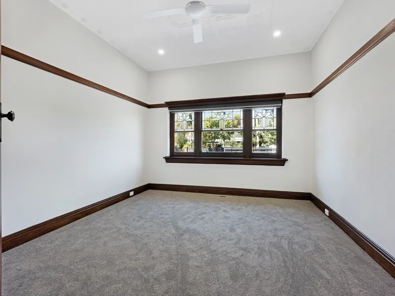 Gorgeous timber detail, high ornate ceilings and floorboards bring warmth, while ducted heating, air conditioning, separate laundry, automated drip system, garden shed and plenty of off street parking behind remote gates provide function and comfort.