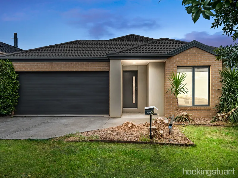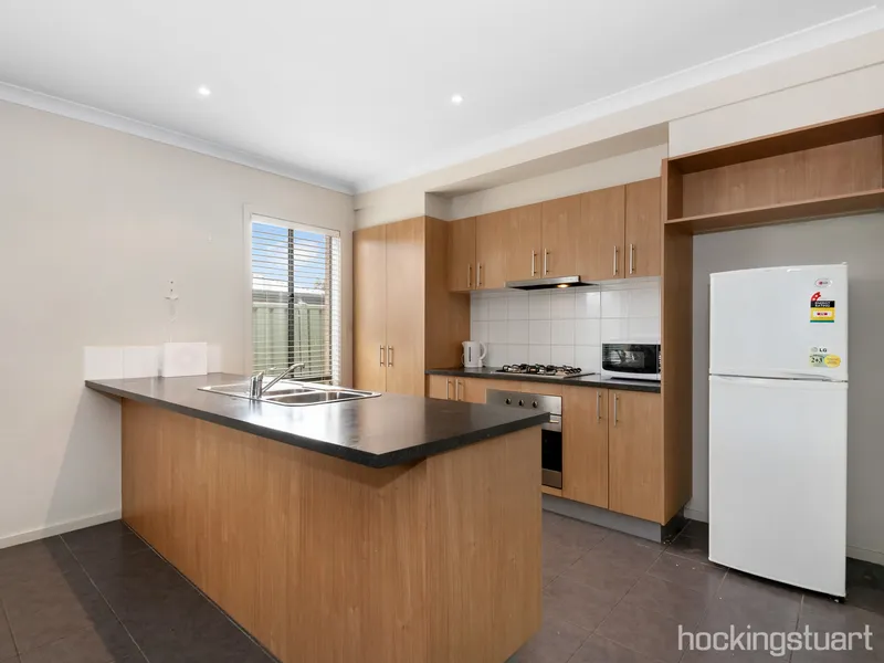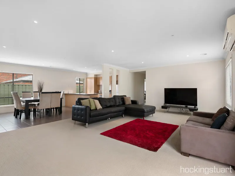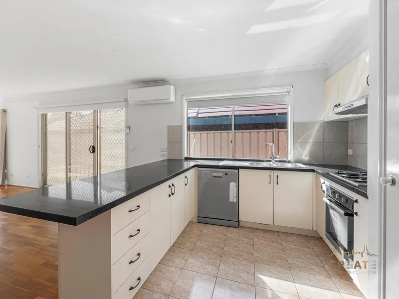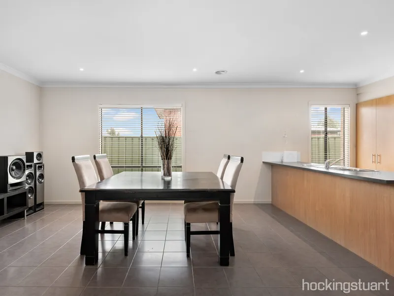 The home comprises three generous bedrooms, including a master bedroom complete with a walk-in robe and ensuite. A light-filled formal lounge welcomes you upon entry and flows through to a well-equipped kitchen, overlooking an open-plan meals area and a spacious second living/family zone.