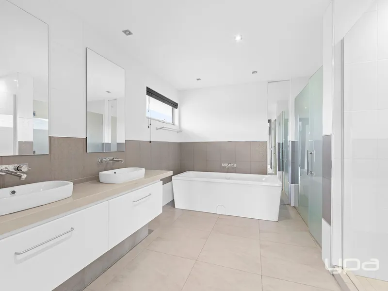 Discover luxury living in this stunning ex-display home, perfectly located in the heart of Caroline Springs. Featuring four spacious bedrooms, including a master suite with WIR and ensuite. Ensuite equipped with a double basin, oversized shower and bathtub.