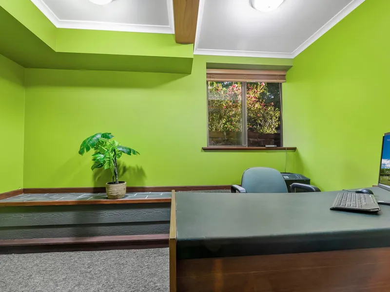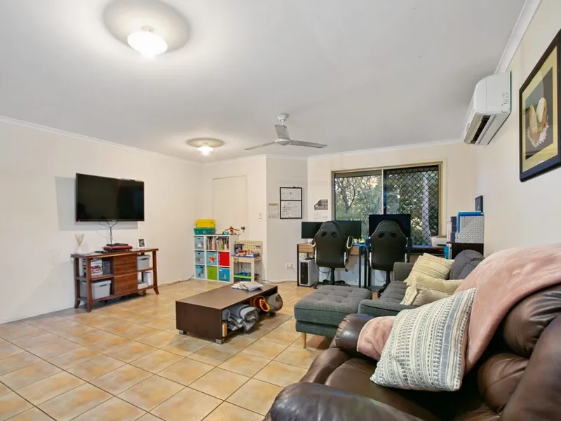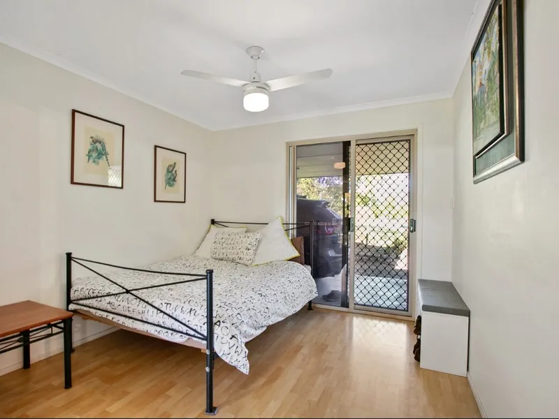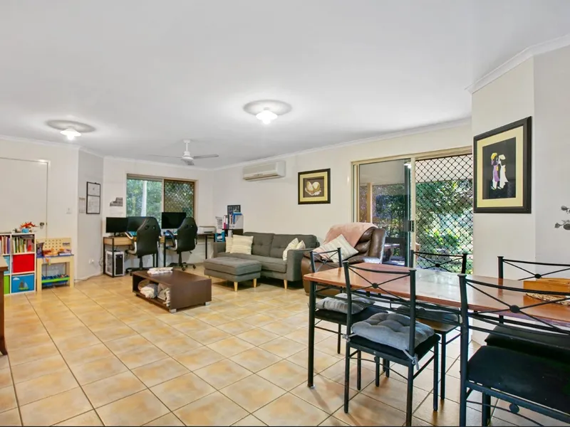 The property comprises of an open lounge and dining area that benefits from ceiling fans along with A/C, there is also an additional room that would make an ideal office space or second lounge. The kitchen features modern appliances, an island counter and walk-in pantry. The two sizable bedrooms feature built-in robes and ceiling fans. The family bathroom conveniently has a separate W/C, there is also a dedicated laundry room.