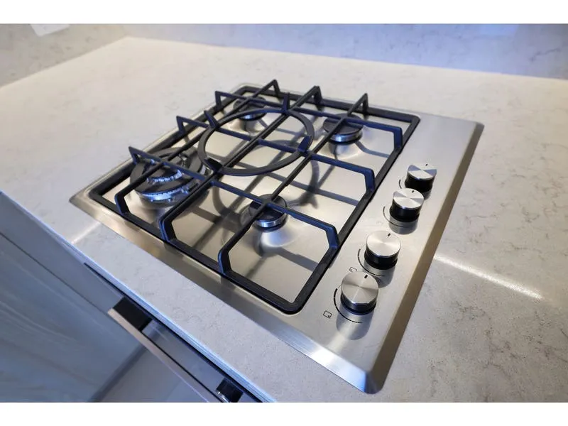 • Modern kitchen with Fisher and Paykel appliances, such as four gas burners, rangehood, oven, microwave, dishwasher