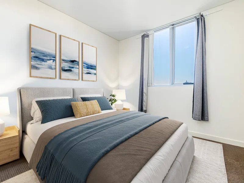 Inside, this 1-bedroom, 1-bathroom residence is a showcase of modern design and thoughtful functionality. Open-plan layout flows naturally through a spacious living area, sleek contemporary kitchen, and generously sized bedrooms—crafted for both relaxation and refined living. Light-filled interiors and contemporary finishes designed for modern living. Quality kitchens with SMEG appliances and spacious balconies for indoor-outdoor flow, coupled with ducted heating and cooling will keep you cool in summer and warm in winter.