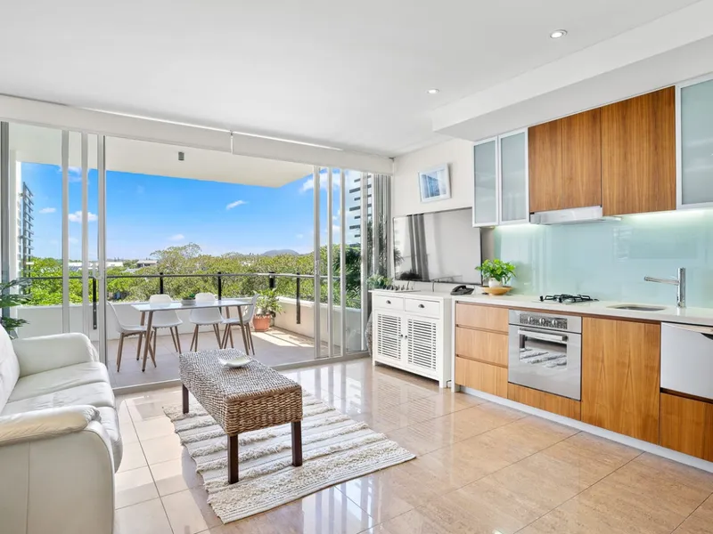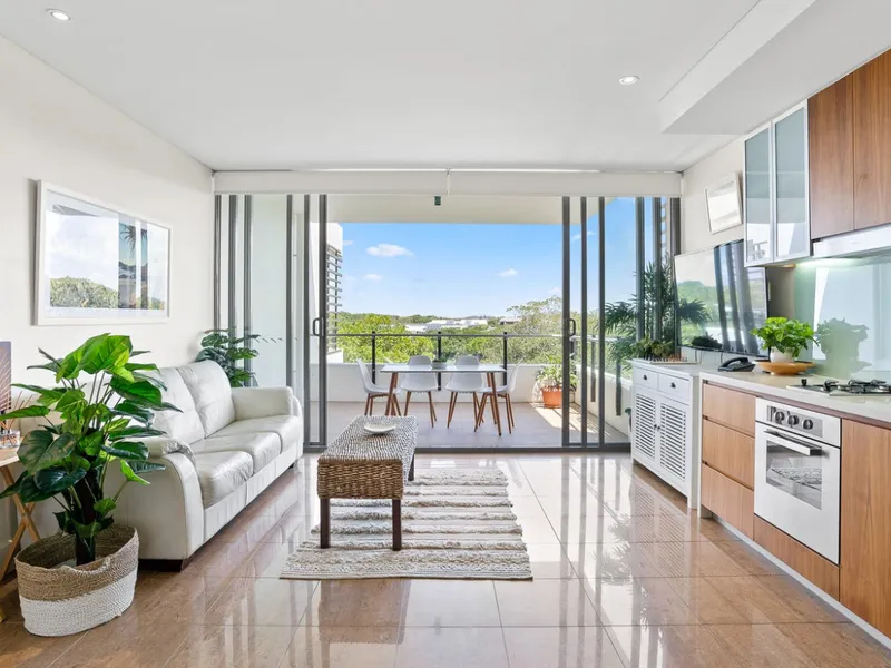Inside, the apartment is designed for effortless indoor-outdoor living. The open-plan kitchen, dining and living area flows seamlessly onto a spacious balcony, creating a light-filled space to relax or entertain while enjoying the coastal breeze.