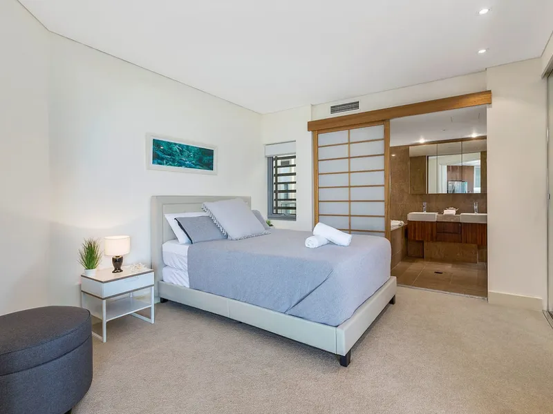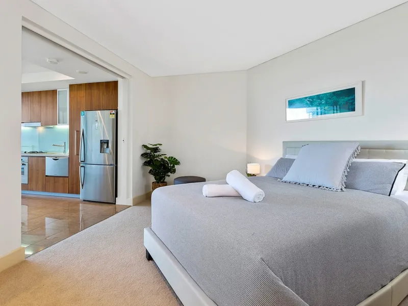 The generous bedroom is complemented by a well-appointed bathroom and built-in storage, while the furnished interior allows for a simple move-in and immediate enjoyment of the lifestyle on offer. A secure car space and on-site storage add everyday practical