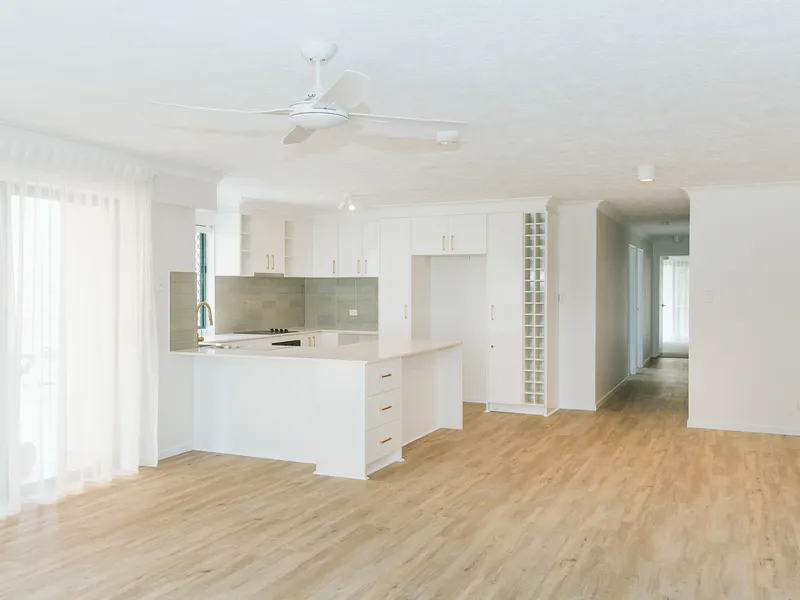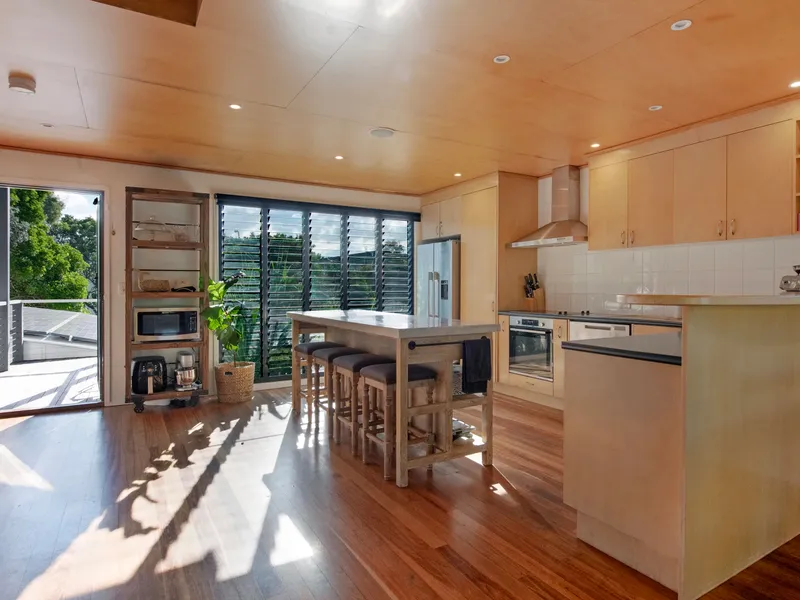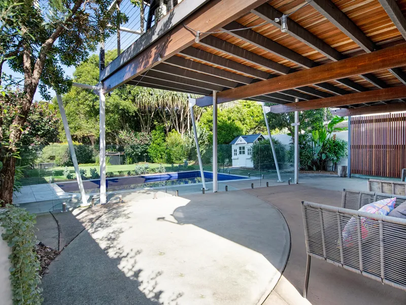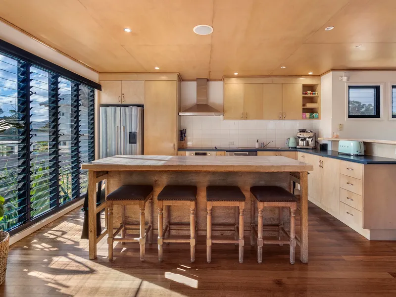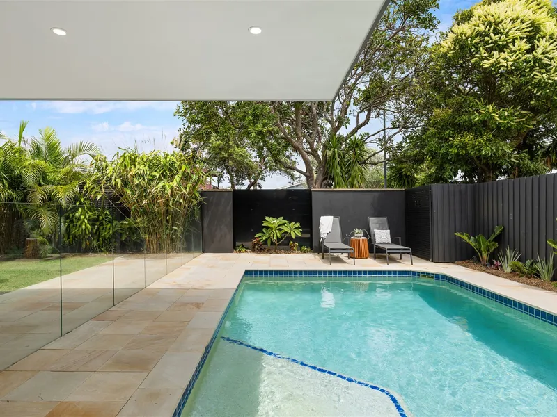 The heart of the home is an open-plan kitchen, living and dining area and a spacious, functional zone that’s ideal for everyday living or easy entertaining. Large sliding doors lead directly to the covered patio and pool, where sea breezes and the sound of waves set the tone.