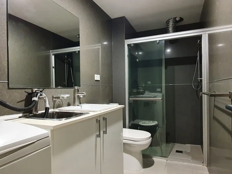* Laundry facilities in bathroom area