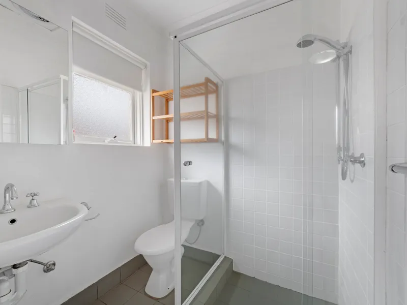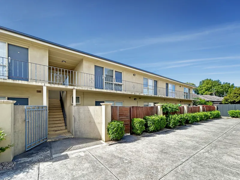 This exceptional first-floor apartment offers an unparalleled combination of comfort and convenience, with secure entry and a prime position at the rear of a well-maintained block. Bathed in natural light, this charming residence boasts a spacious open-plan living area with split system heating and cooling, a refurbished kitchen featuring electric cooking, ample storage, and a washing machine. The bedroom includes built-in robes, while the sparkling ensuite adds a touch of luxury. Ideally located, this apartment is minutes to Caulfield Racecourse, parklands, Caulfield Train Station, and Monash University (Caulfield Campus). Carport space for 1 car #23
