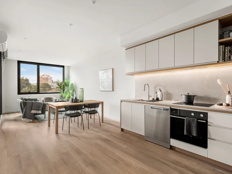 Privately positioned in a quiet, tree-lined street just a short walk to the Hawthorn Road shops and tram with Princess Park and Caulfield Primary School close by. Step beyond picket fencing and mature hedging and escape the everyday with an easy living layout all on one level. Light filled family lounge (bay window and open fireplace) and dining rooms extend out to curved paving, while a prestige kitchen overlooks a smart, exposed aggregate driveway with ample room to play and park.