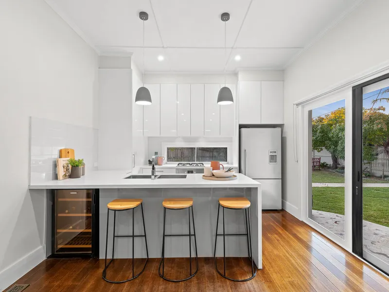 Filled with character, high strapped ceilings, polished floor boards and leadlight windows complement modern conveniences such as a family-sized laundry, ducted heating, evaporative cooling and auto gated parking for 2-plus cars. Enjoy space and style inside and out, with everything your family needs within easy reach.