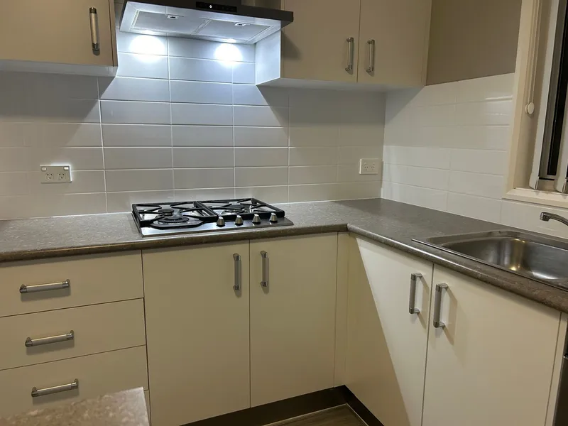 * Modern gourmet kitchen with stone benchtops, gas cooking and dishwasher