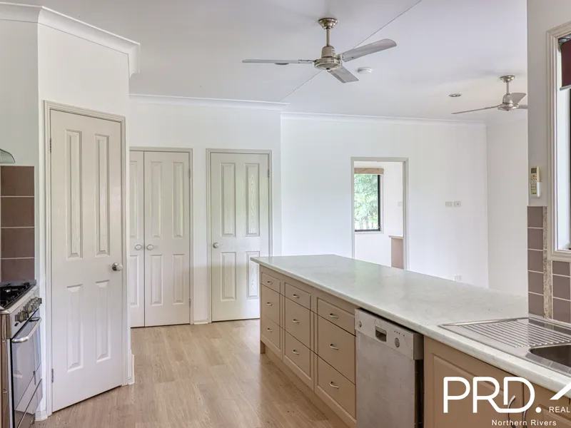 The thoughtfully designed home combines comfort and functionality with style, focusing on those amazing views of the Border Ranges National Park and Wollumbin. At the heart of the home is the large, air-conditioned open-plan living/kitchen/dining area for easy entertaining. Preparing meals will be a pleasure in this well-equipped kitchen, with a 900mm oven with gas cooktop, dishwasher, ample storage, and a large island with breakfast bar. Sliding glass doors open out to the full-length deck, where you will spend many an hour relaxing and appreciating your serene surrounds. A separate family room is perfect for enjoying a cozy movie night.
