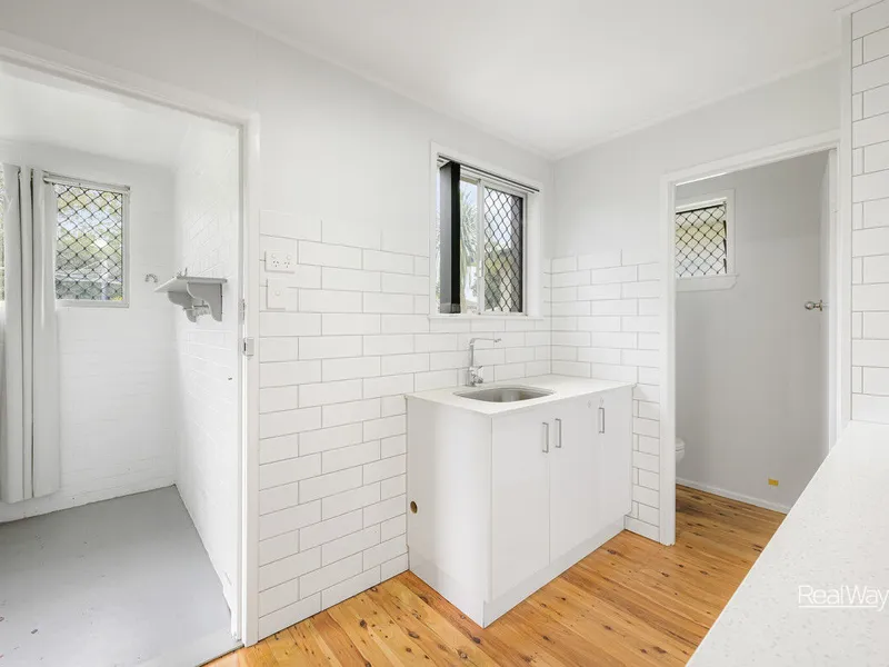 The fully renovated bathroom showcases stylish finishes and practical design, featuring a separate bath, shower and toilet to suit busy family living. A spacious laundry at the rear of the home provides ample bench space, storage and convenient access to the backyard.