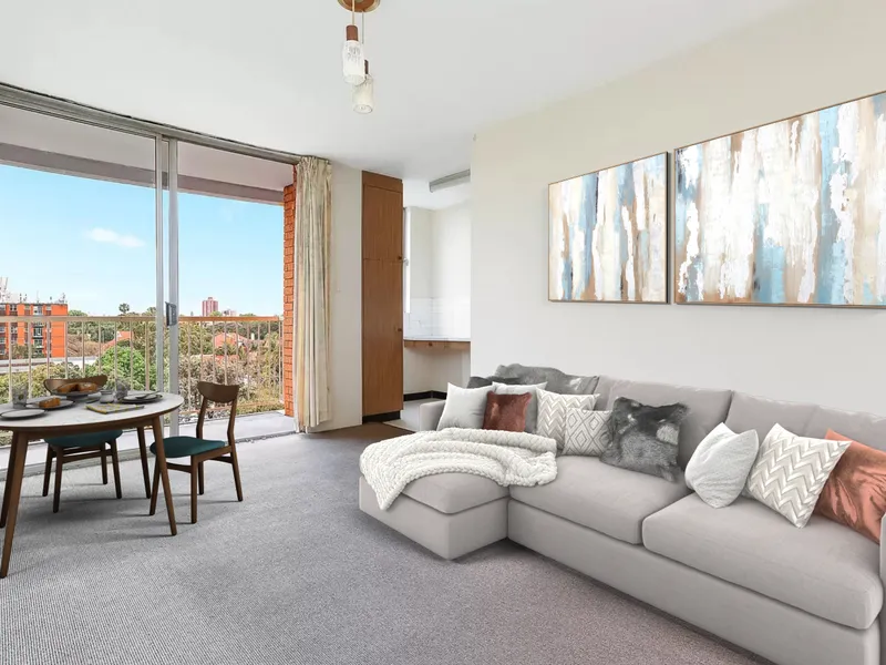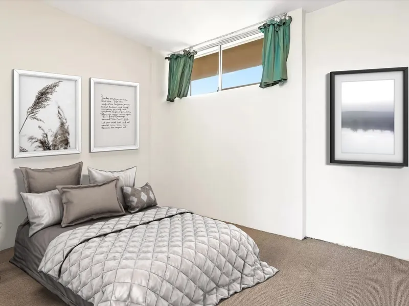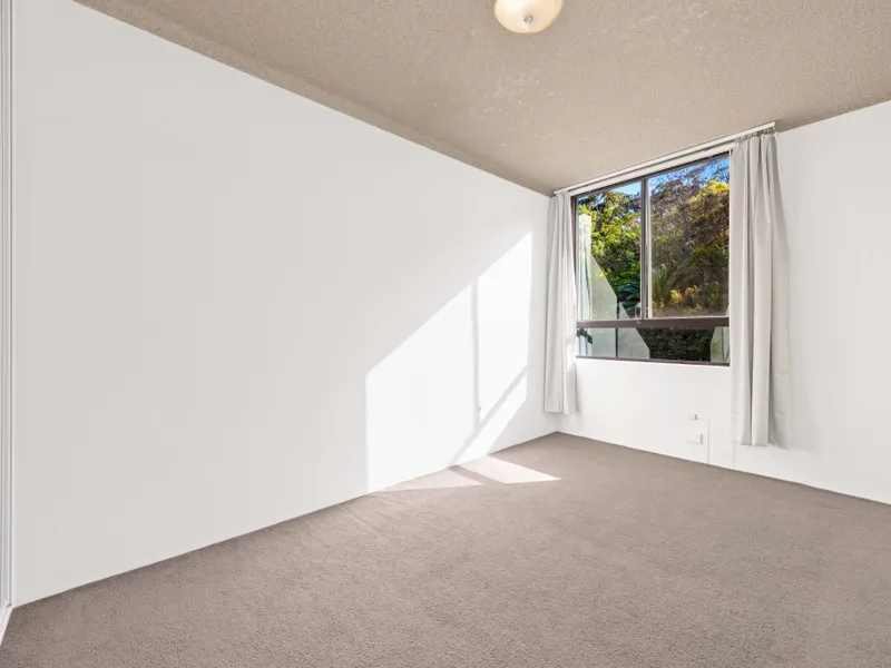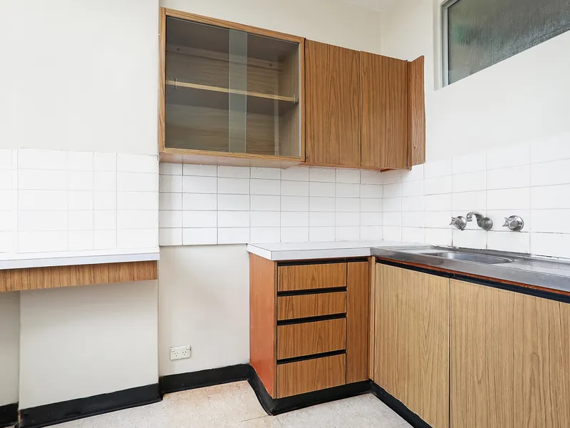 Positioned within a well-maintained security building with intercom and lift access, the apartment offers an ideal layout featuring a naturally light-filled open plan living and dining area. The generous bedroom includes built-in wardrobes, while the well-proportioned kitchen provides ample storage and electric cooking facilities.