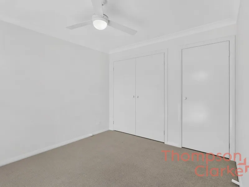 1 spacious bedroom with built-in wardrobe and ceiling fan.