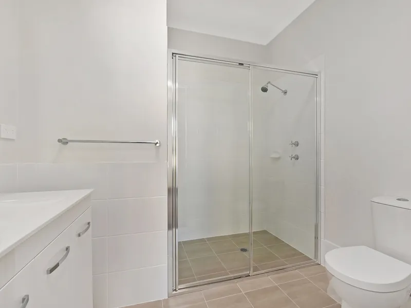 - Master bedroom at the front of the villa, includes walk in robe and ensuite with double sized shower and toilet