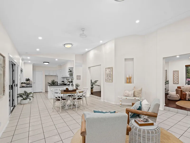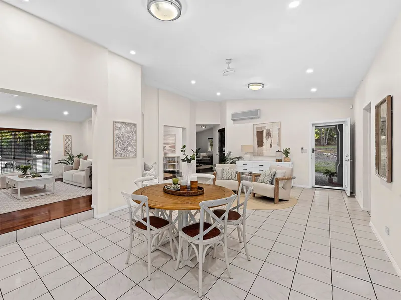 - Multiple living zones including a formal lounge, open-plan living/dining, and a separate rumpus room