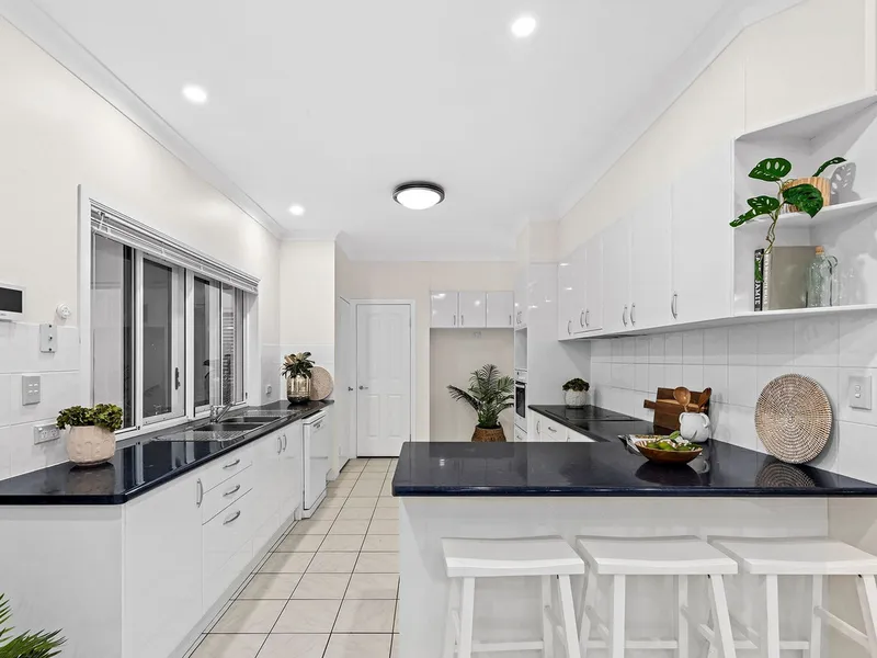 - Central chef's kitchen with stone benchtops, plenty of storage, breakfast bar, and views over the main living areas
