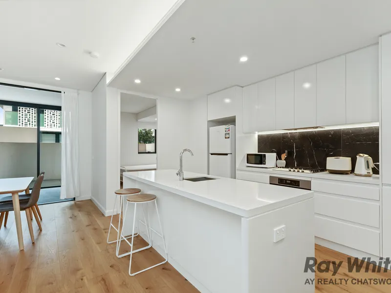 Discover modern living in the heart of Chatswood. This beautifully designed 2 bedroom apartment is located in the sought after Chatswood Place. It offers both comfort and convenience. Exceptional built this two-bedroom apartment showcasenes near new quality finishes for modern day living. With generous open plan living and dining areas, flowing out to a multipurpose wintergarten and a sun-drenched terrace. Gourmet kitchen with gas is finished with Caesar stone top. Modern bathroom and two spacious bedrooms, both with built in robes. Including an internal laundry, security intercom, a secure under cover car space with a storage cage. Located only moments to a selection of restaurants and shops on the ground floor. Only a short stroll to Chatswood Interchange, shopping and dining district, and prestigious schools.