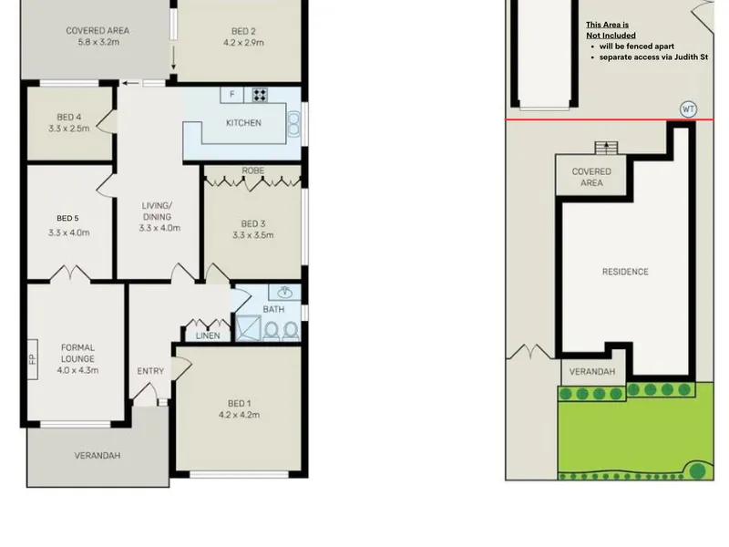 There is a separately rented granny flat to the rear of the property which is fenced apart and separate. The property is located on a corner position which allows the granny flat residents to access their property from Judith Street; this provides a completely separate access to the main house.