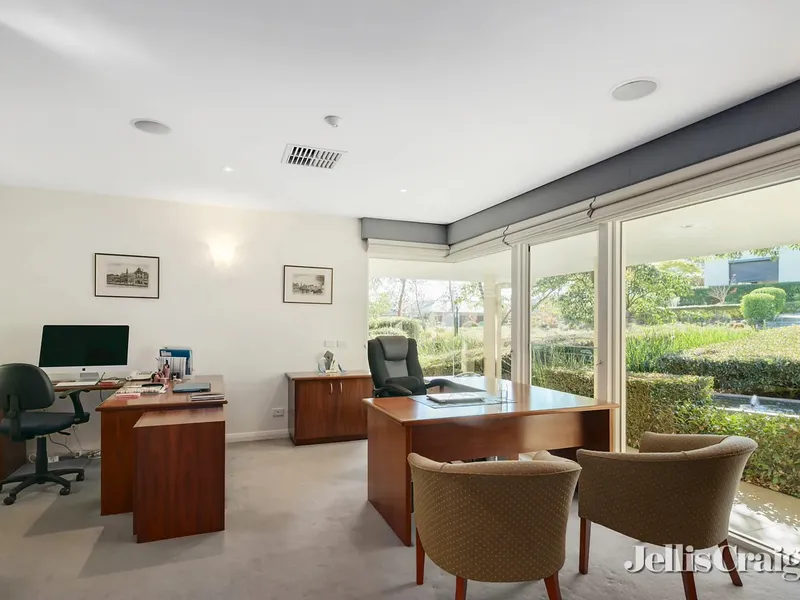 The main bedroom includes a walk-in robe and private ensuite, with additional bedrooms also offering walk-in robes and convenient access to multiple other bathrooms. A dedicated theatre room provides the perfect space for movie nights or entertaining, while additional living areas and a study offer further versatility for families working or studying from home.